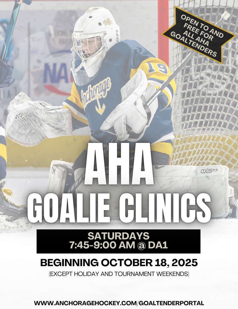 Anchorage Hockey Association Goalie Clinics are open to all current season members, free of cost.